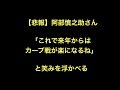 | 阿部慎之助さん「これで来年からはカープ戦が楽になるね」と笑みを浮かべる | |